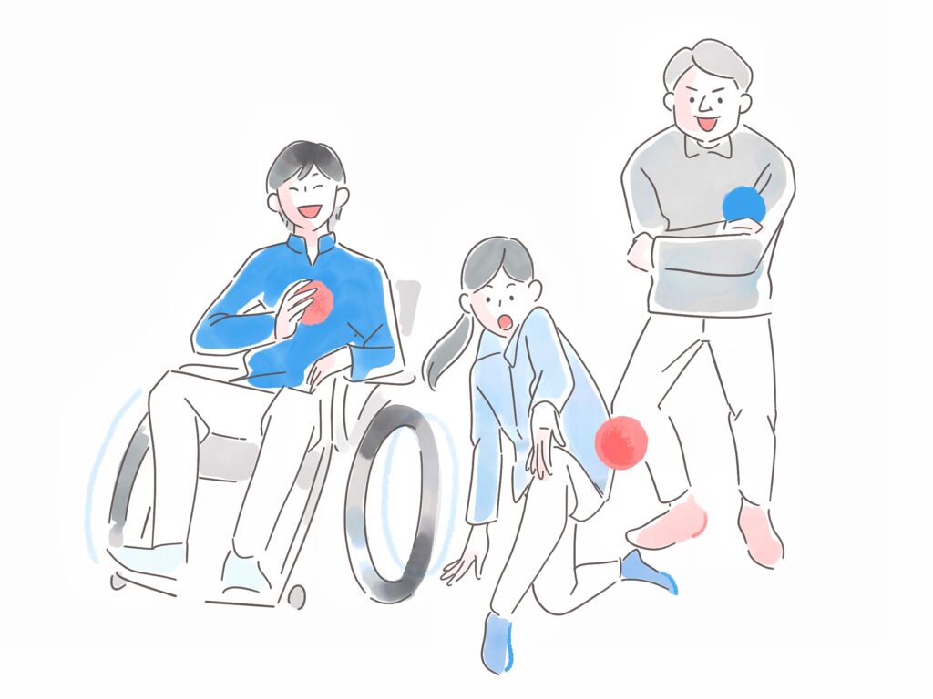 ボッチャとは、決められた範囲の中に目標球である白いボールを投げて置きます。